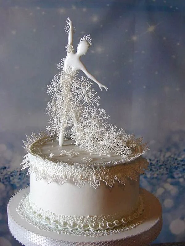 WOW. Her gown is manufactured from delicately iced snowflakes! That is adorning magic. Wonderful.
