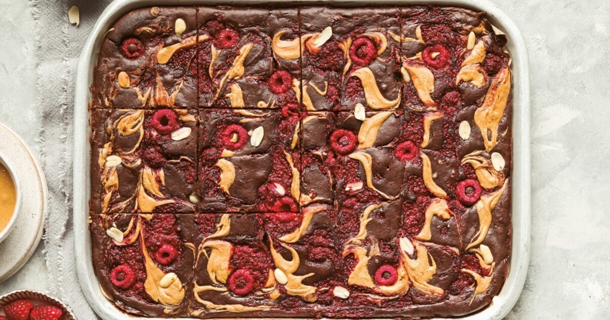 The trick to tremendous quick brownies? Make them on the skinny facet. The swirl of raspberry jam and peanut butter gives the richness you’d count on from biting right into a thicker brownie. It is a stable recipe for a dense, fudgy brownie, however if you happen to’re brief on substances, swirling jam and nut butter right into a store-bought vegan brownie combine works simply as properly.