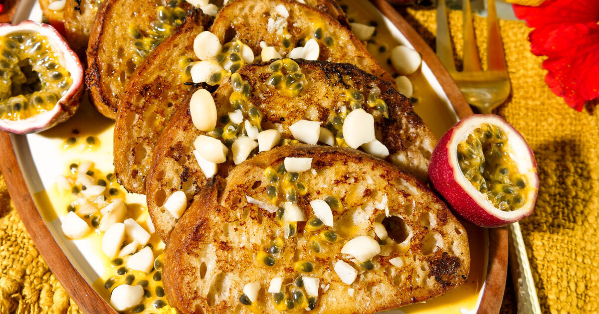 Passion Fruit French Toast With Macadamia Mascarpone