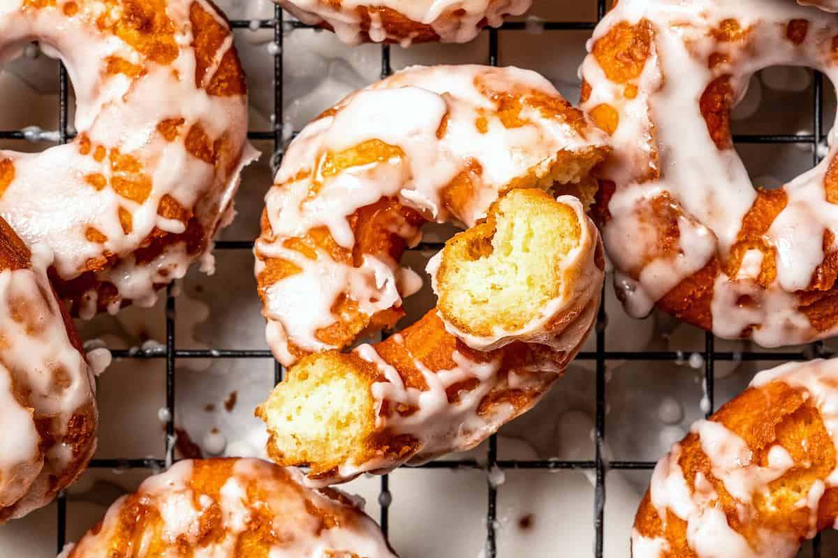 These old school bitter cream donuts don’t require any yeast or rising time, so that they’re able to eat in underneath an hour! Every one is delicate and cakey beneath a golden, crackly crust that soaks up the creamy vanilla glaze.