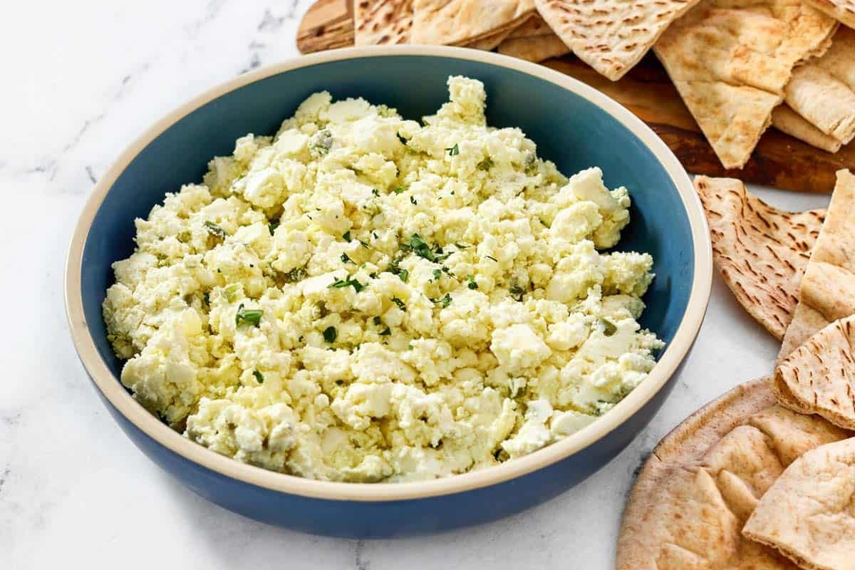 Creamy whipped feta dip with jalapeno and onion identical to CAVA. Tangy, spicy, and excellent for dipping or spreading.