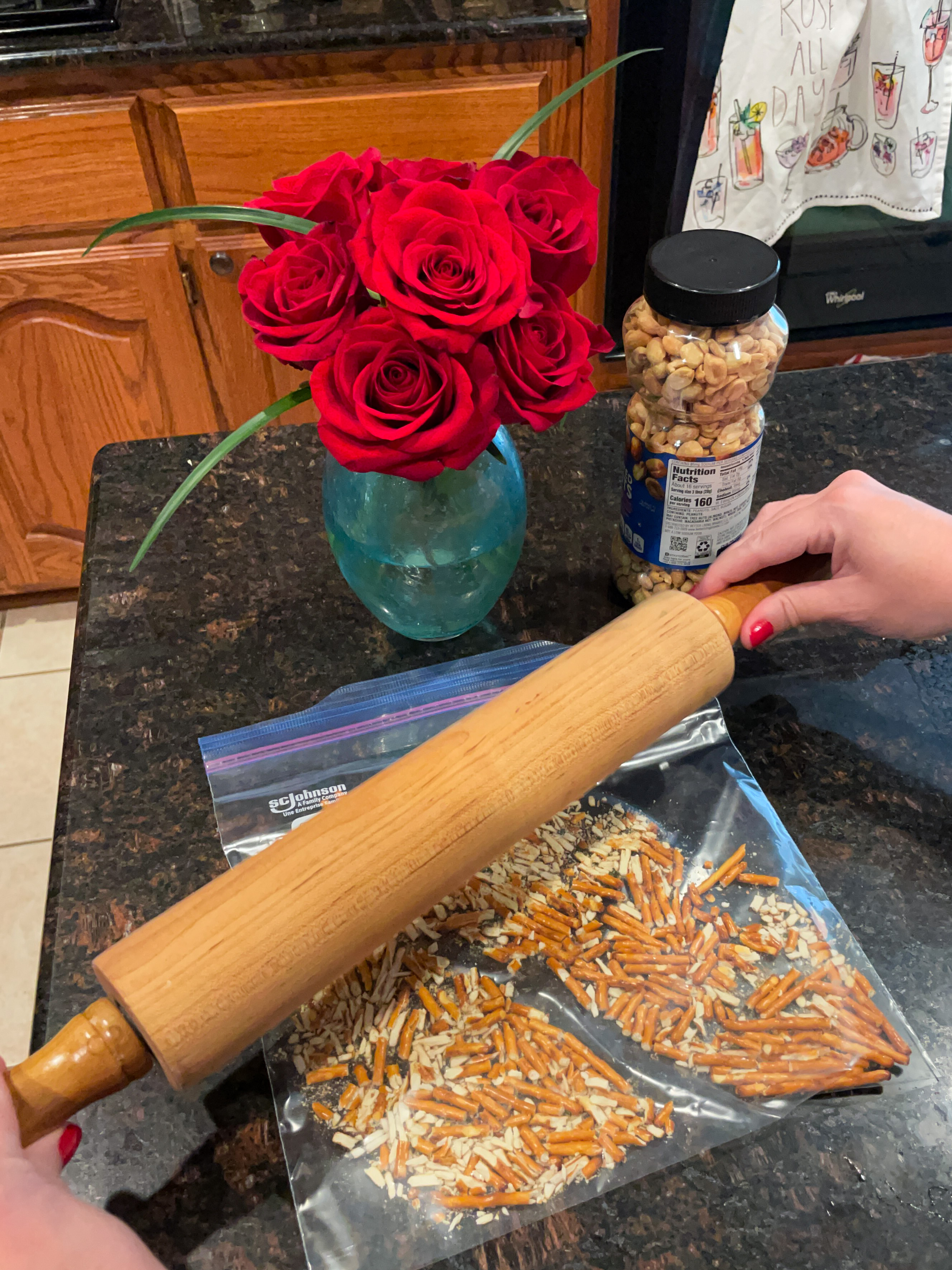 - Stir in crushed pretzels and peanuts. Drop spoonfuls onto cooking sheets lined with wax paper or silicone mats. Sprinkle somewhat sea salt on high.