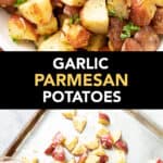 Buttery-rich garlic roasted potatoes with crisp edges, coated in aromatic garlic and tangy parmesan for one of the best Garlic Parmesan Roasted Potatoes!