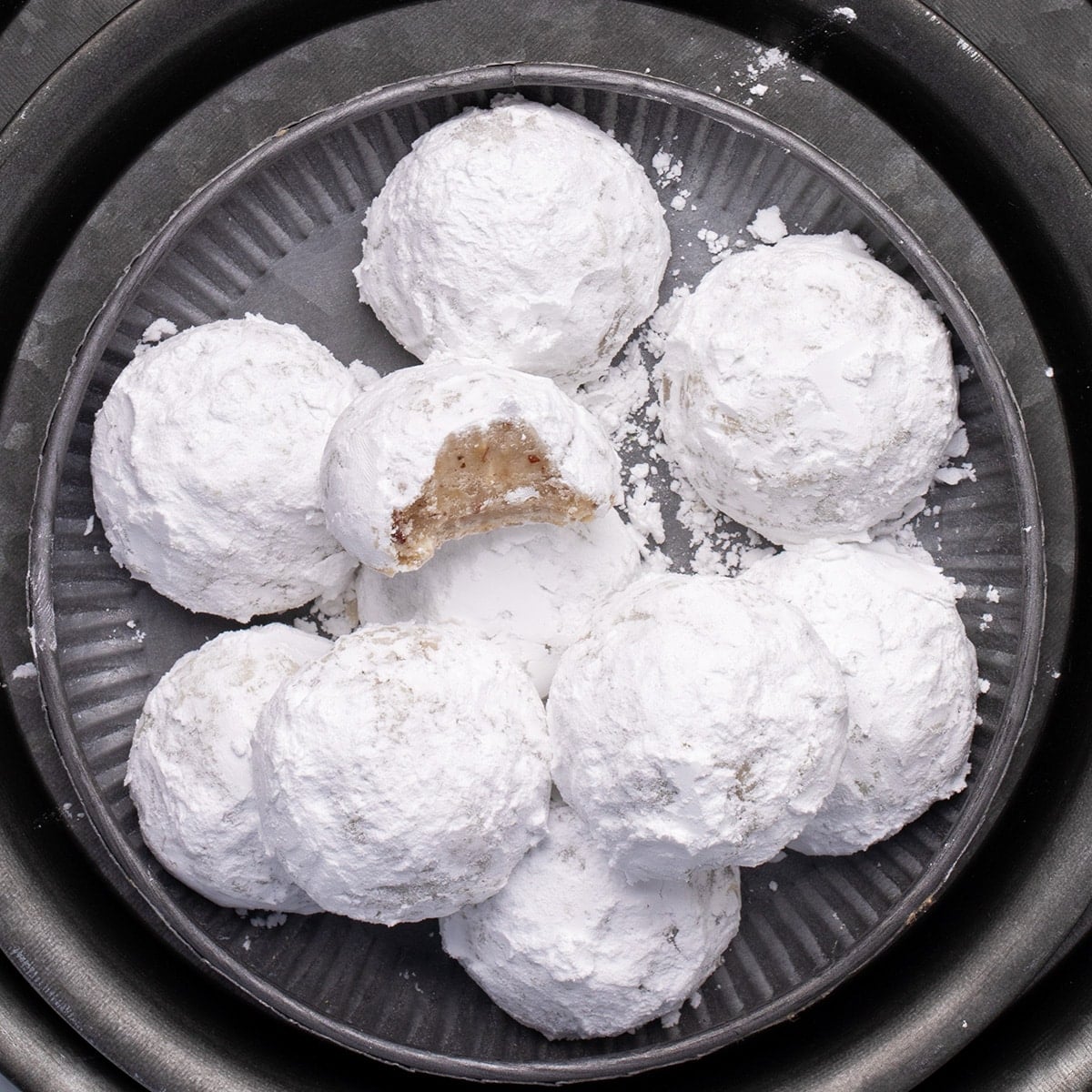 • After the cookies have cooled utterly, toss once more in confectioners’ sugar (including extra as wanted) to coat and supply that snowball look. If you happen to do not plan to serve the cookies instantly, delay this last coating of sugar till quickly earlier than serving.