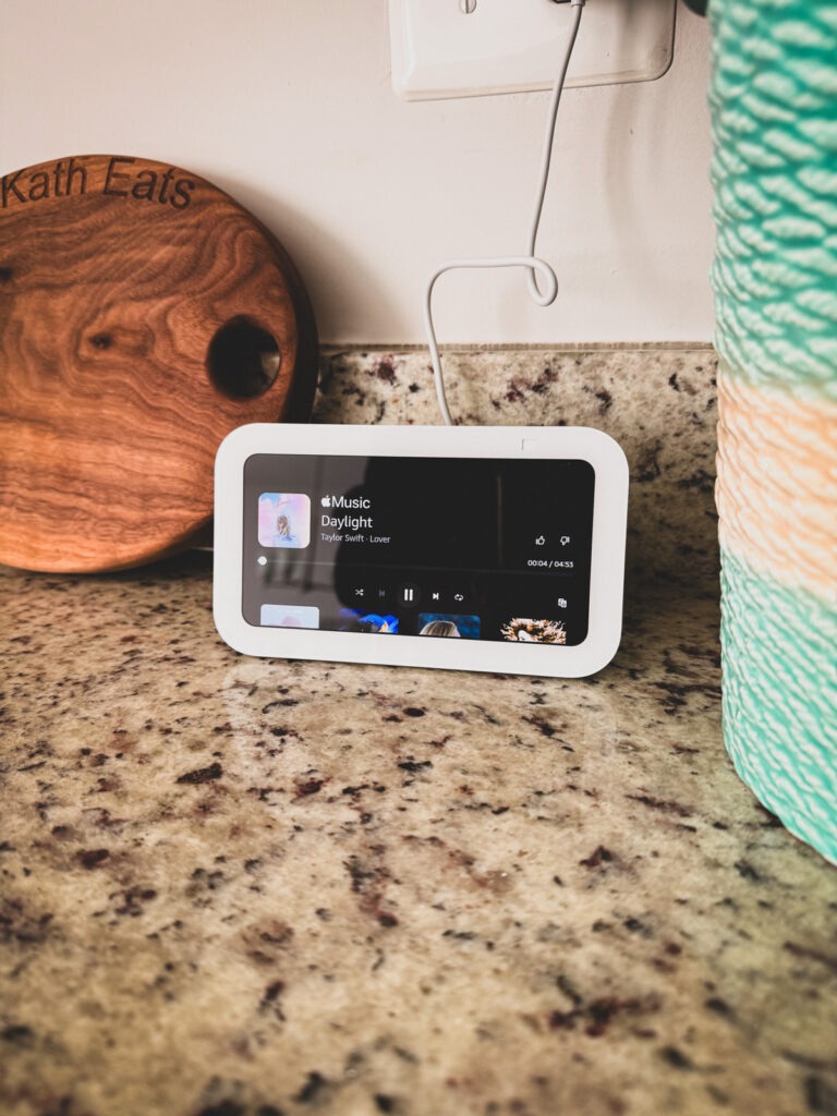 I additionally love having the display screen. It’s useful for seeing the climate, checking what music is taking part in, setting timers, and controlling different good units round the home.
