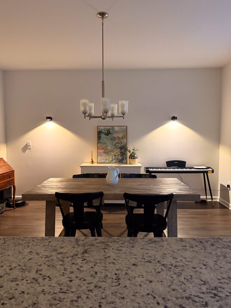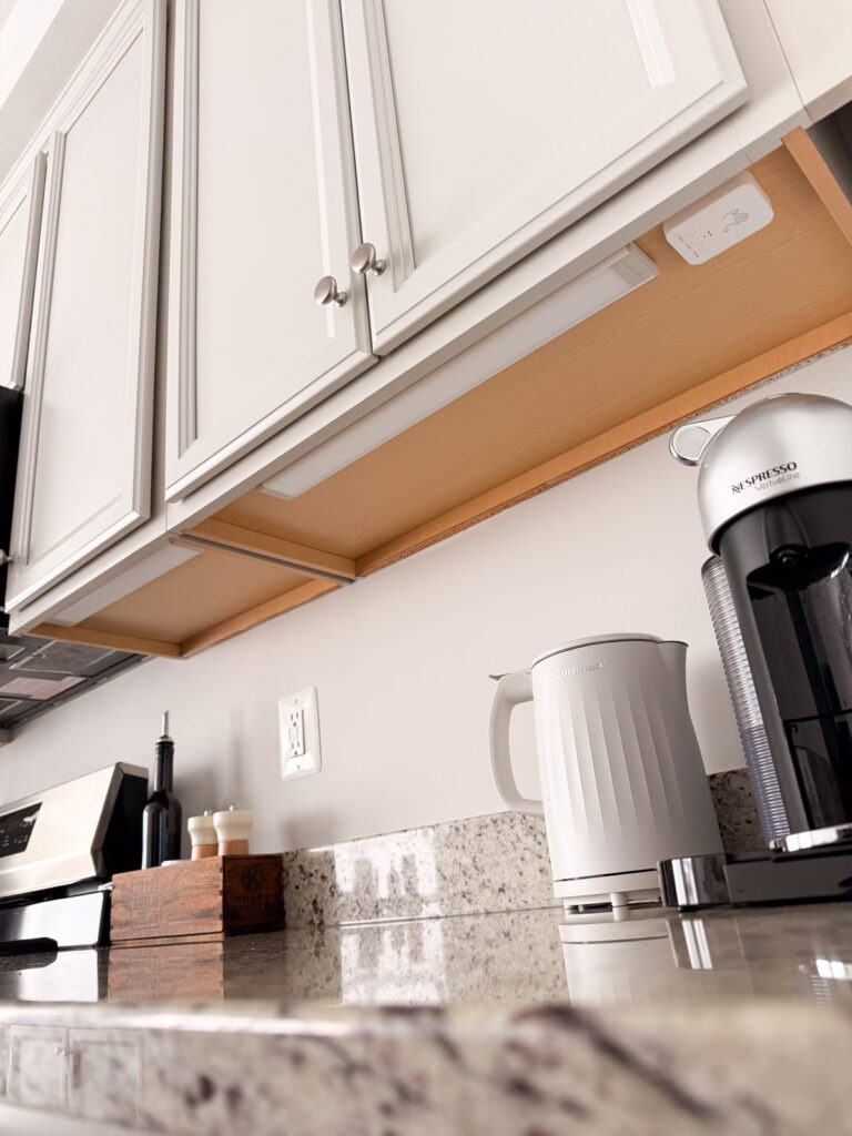 I additionally love including temper lighting round the home, particularly through the darker winter months. As you realize, in a rental you possibly can’t precisely simply name an electrician to put in lighting, and underneath cupboard lights are one in every of my favourite methods to raise a kitchen. I’ve been utilizing GlowRight In every single place Lights underneath my cupboards and within the pantry and the Halo Lux spotlights for ambient lighting, they usually’re such a enjoyable improve with no electrician required!