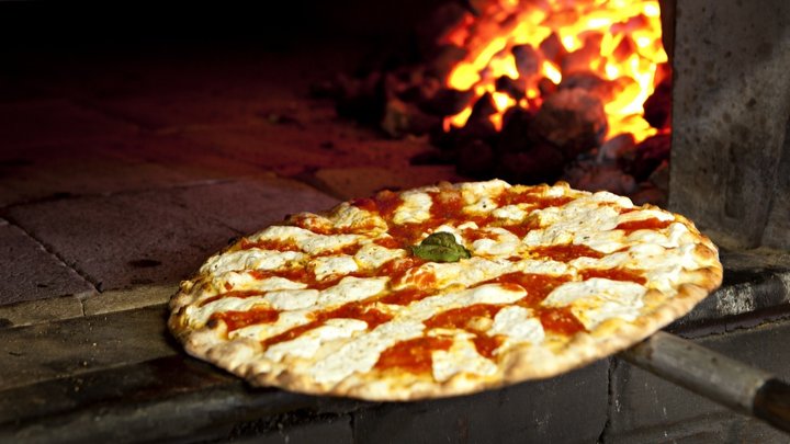 Grimaldi’s serves coal-fired brick oven pizza and calzones.
