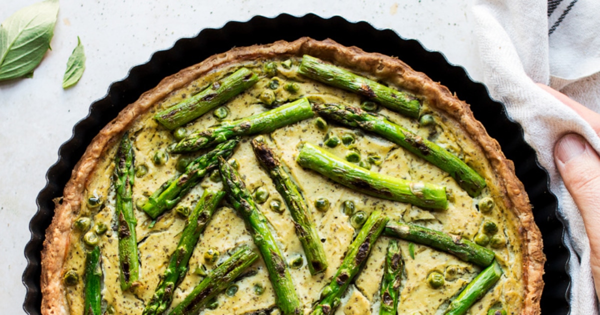 Quiche is scrumptious with a little bit of grilled asparagus on the aspect, positive. However what about asparagus inside the quiche? We’re right here for it. This tasty vegan quiche—which is made with a agency silken tofu base—can be loaded up with spring onions, garlic, and contemporary basil.