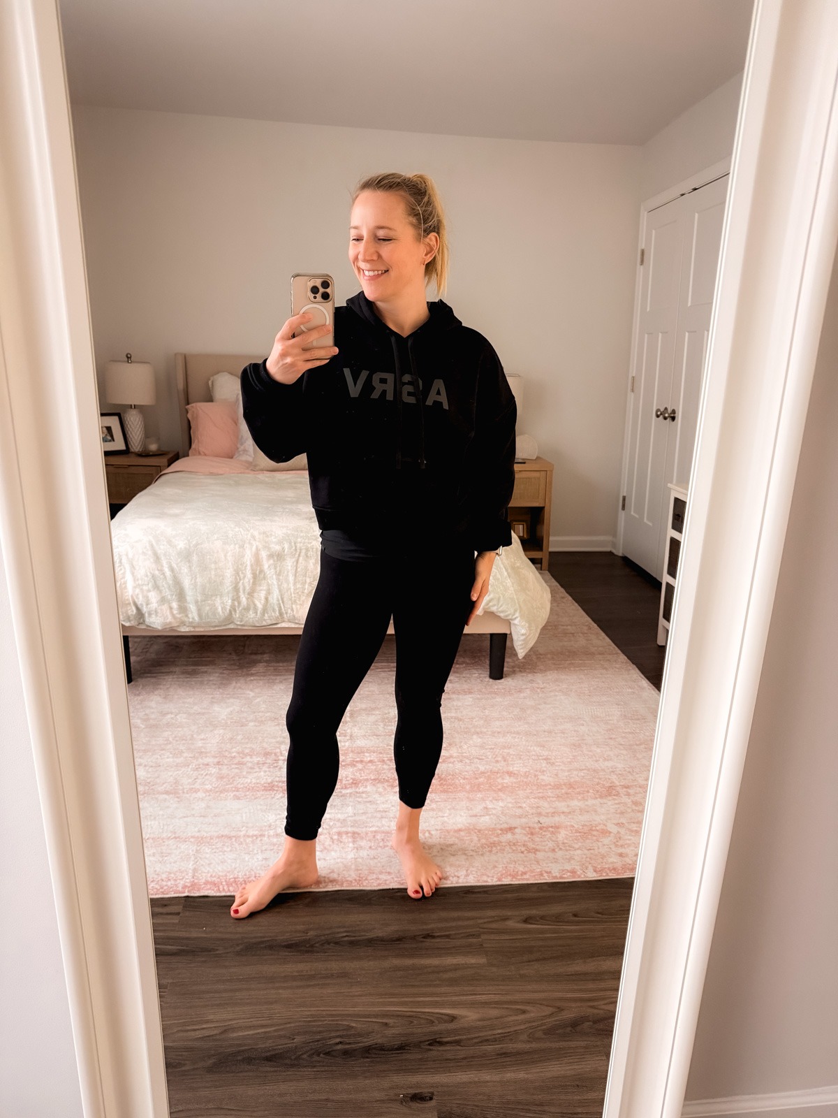 I hadn’t heard of ASRV earlier than however they design technical sportswear for athletes and hybrid trainers. Their merchandise have a “I carry heavy” vibe about them. I actually love this cropped hoodie they despatched me and have been sporting it as my health club warm-up layer!