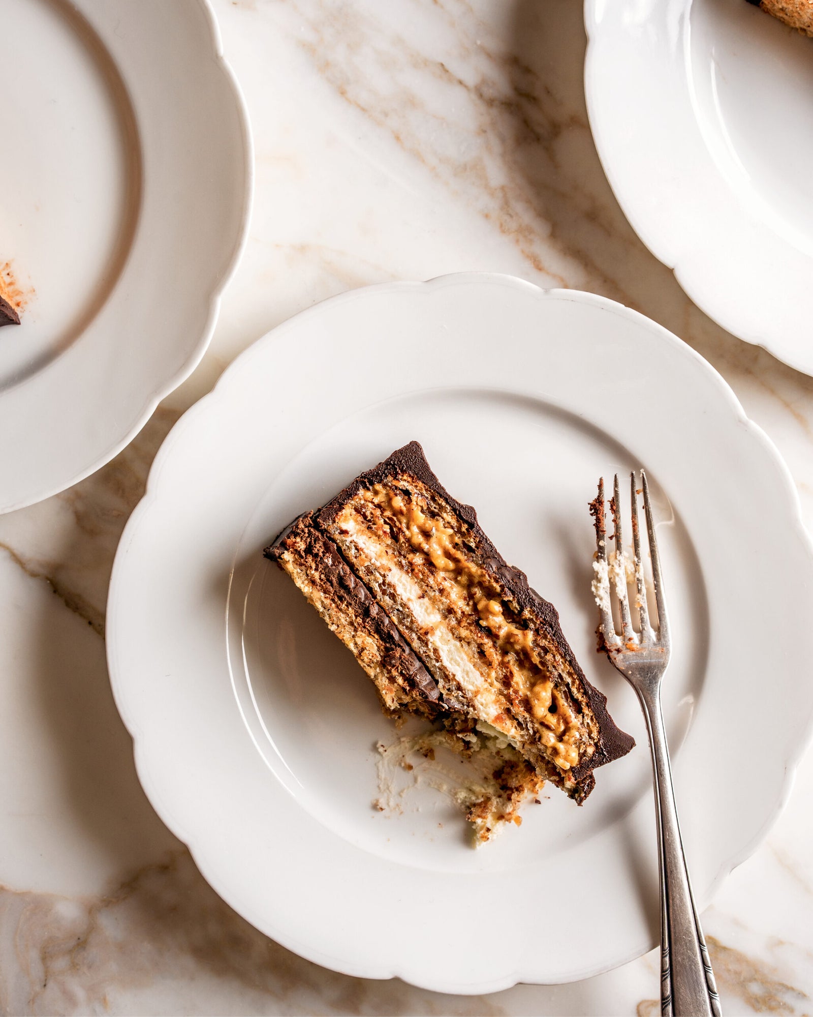 For the praline cream, stir ⅔ cup of the whipped crème fraîche combination into the chopped praline. (The combination will appear considerably stiff however the components will meld, and by the point you’re prepared to make use of it, the praline cream can be spreadable.) Put aside.
