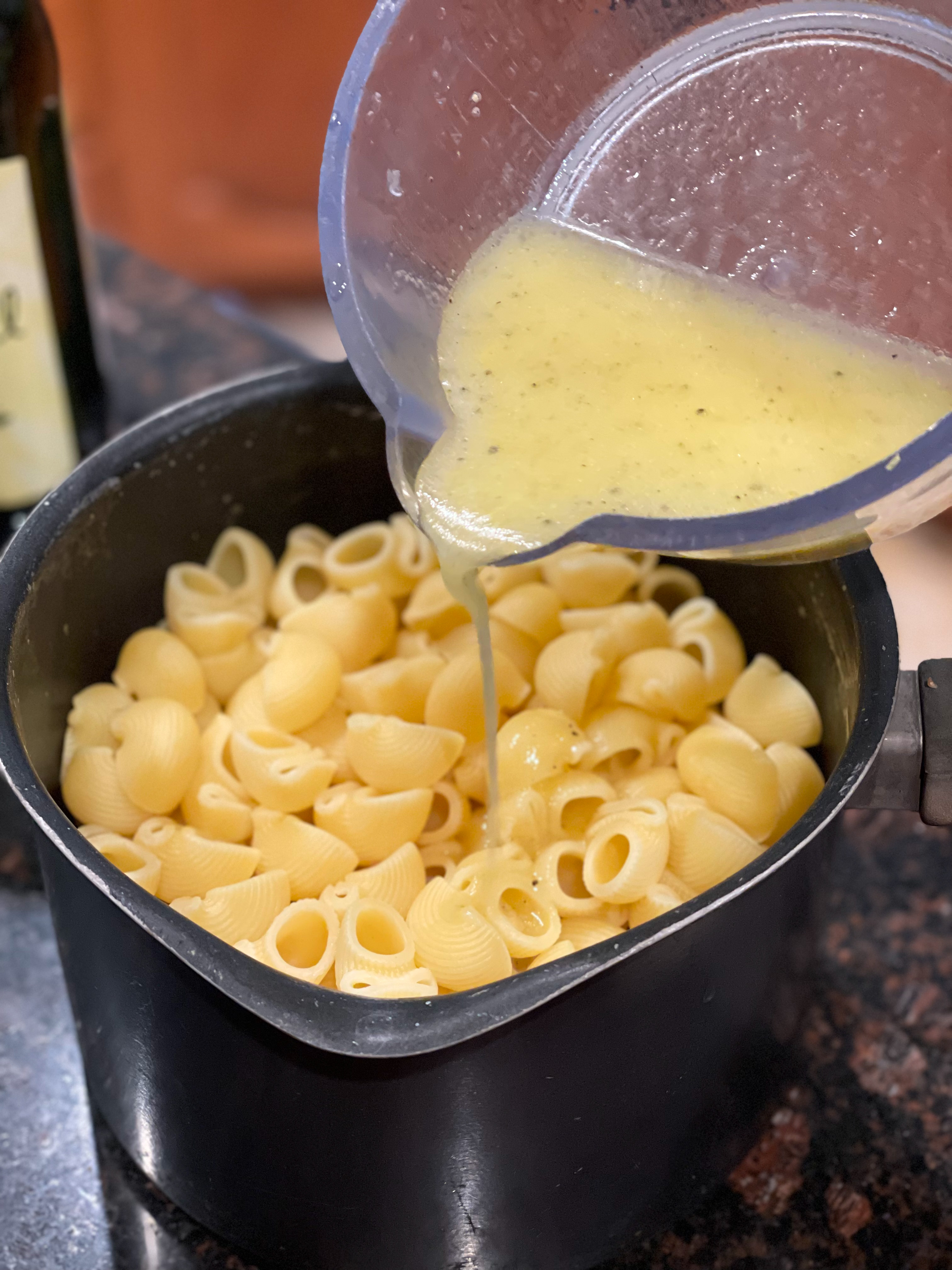 - Prepare dinner pasta al dente in keeping with bundle directions. Drain.