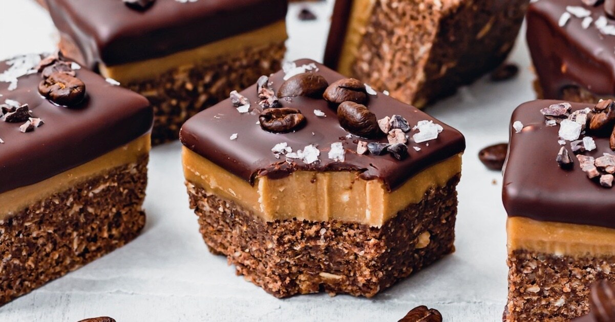 Espresso provides a scrumptious twist on the traditional caramel millionaire bars on this recipe from the Nourishing Vegan Each Day cookbook. Filled with mocha taste, every chew of those plant-based sweets will soften in your mouth.