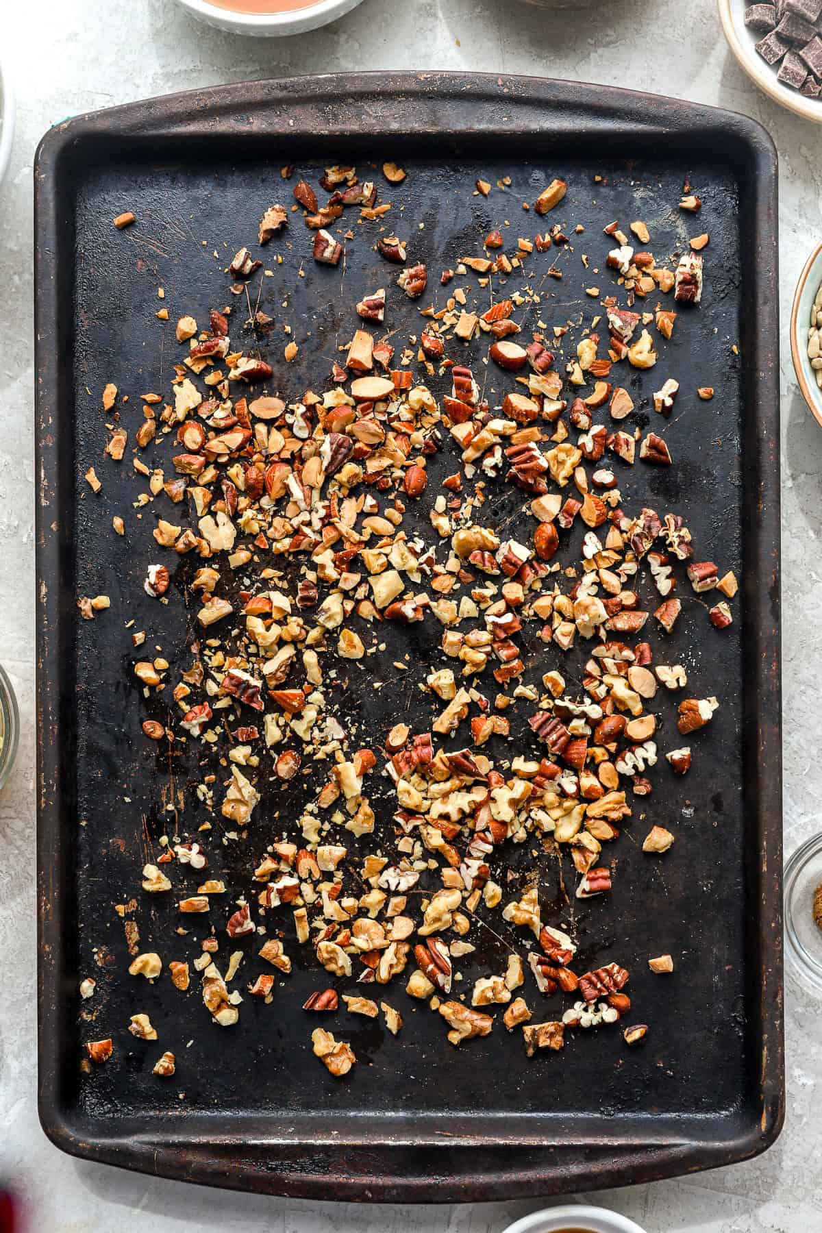 - Chopped nuts (walnuts, pecans, almonds): Nuts deliver richness, texture, and endurance. A mixture works finest, however be happy to make use of only one selection.