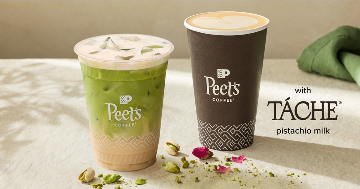 Peet’s Espresso has added two new pistachio milk drinks to its winter lineup, marking the specialty espresso chain’s first collaboration with Táche and increasing its plant-based menu after years of testing vegan choices.