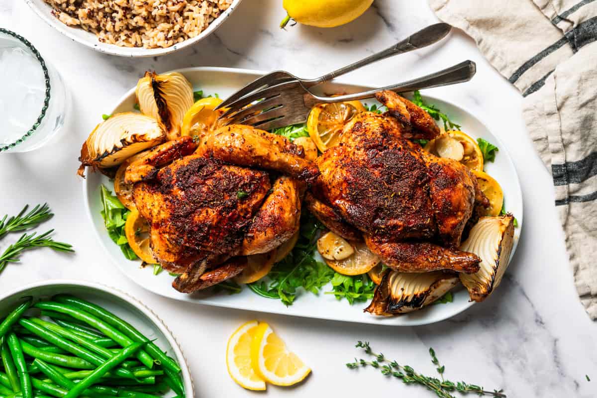 Allow them to relaxation, then serve. Take away the hens from the oven and allow them to relaxation for 10 to fifteen minutes earlier than serving. Serve with some further lemon wedges on the aspect.