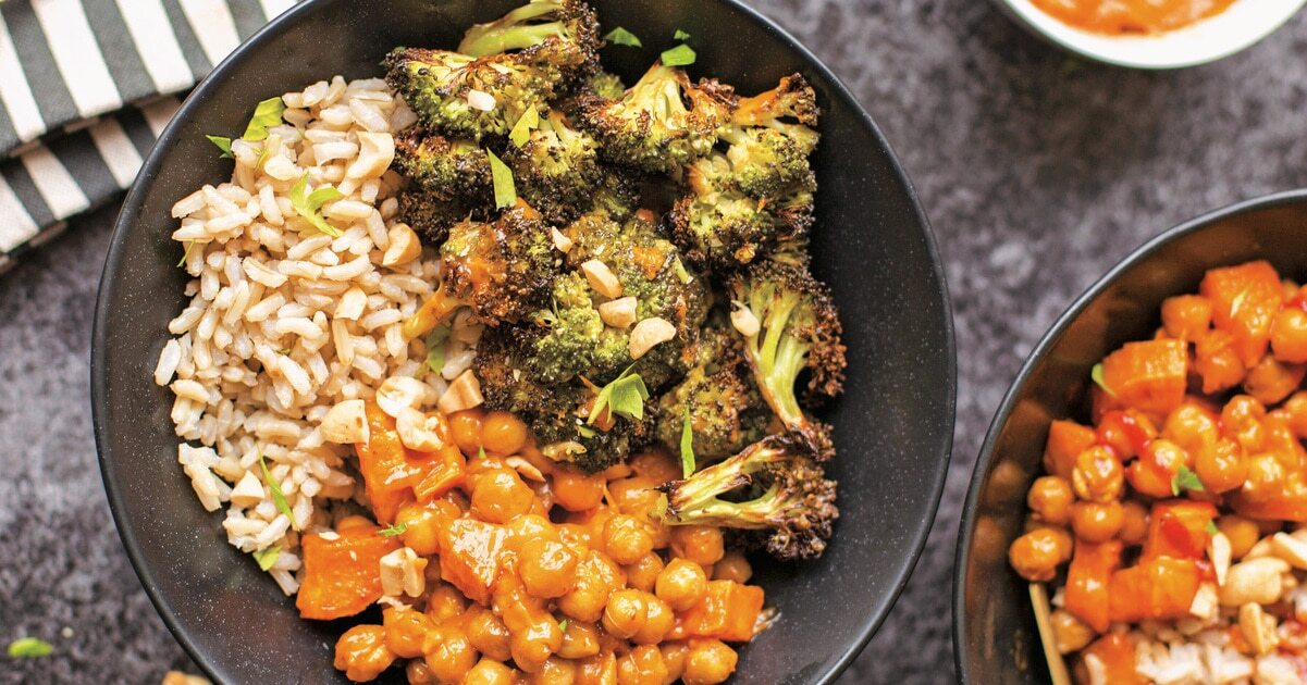 - Preheat oven to 425 levels. Flippantly grease two giant nonstick baking sheets. Add candy potato and chickpeas to at least one giant baking sheet and broccoli florets to different. Drizzle each pans with avocado oil, sprinkle salt over prime, toss, and unfold greens and chickpeas out evenly.