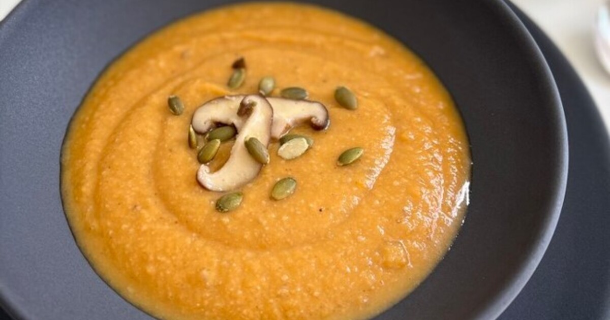 Serve this deliciously savory squash soup from the The One & Performed Cookbook with hearty, heat bread for an ideal chilly climate meal.