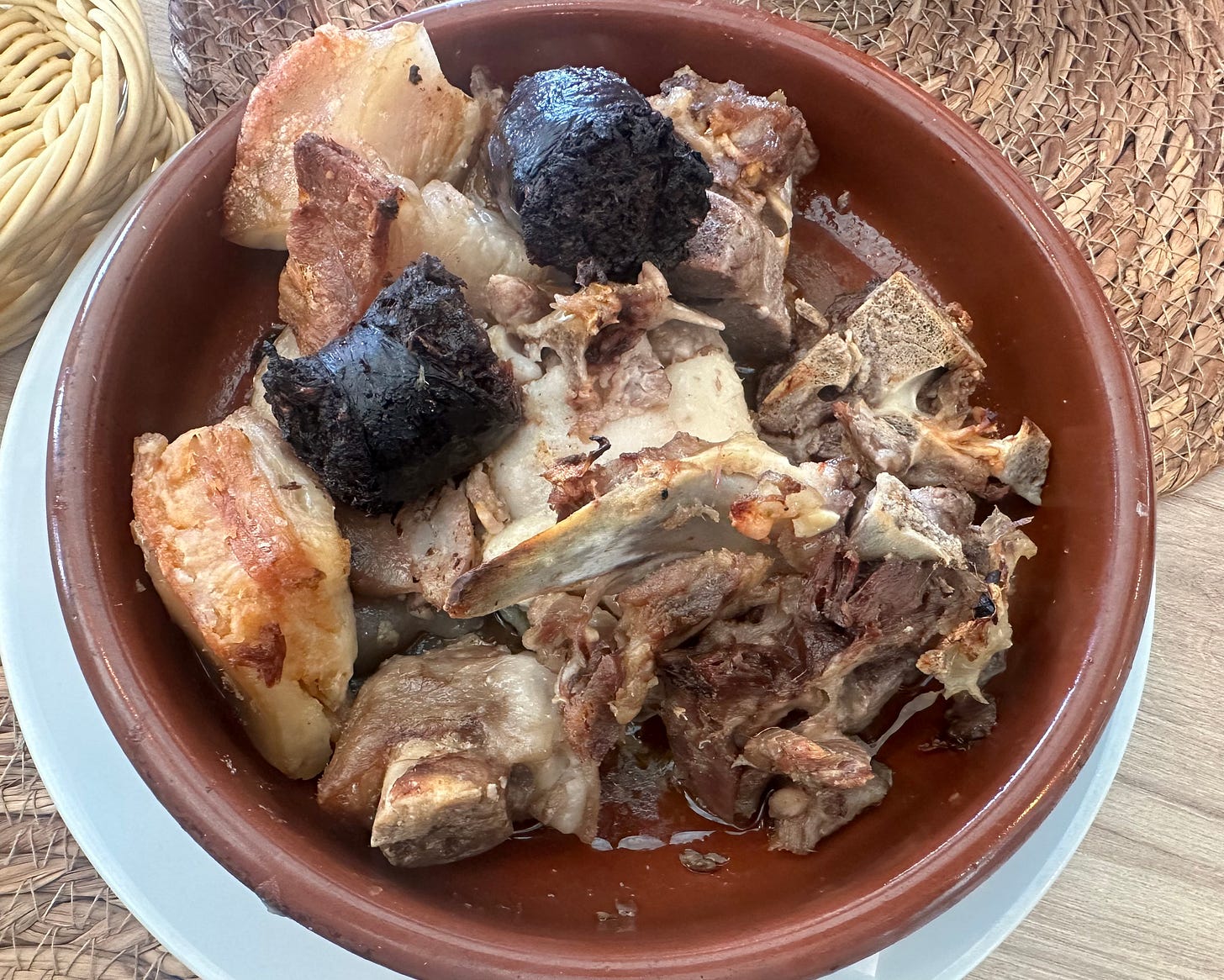 As soon as you might be close to explosion, the ultimate plate arrives. This dish consists of all of the meats that had been cooked together with the olla, full of juiciness and love. They embrace fatty bacon (tocino), pig trotters, tails, snout and ribs together with the spine and blood sausage. In all honesty, that is the toughest half for me. I choose round for the meatier items and the blood sausage after which let my amigos have the remaining!