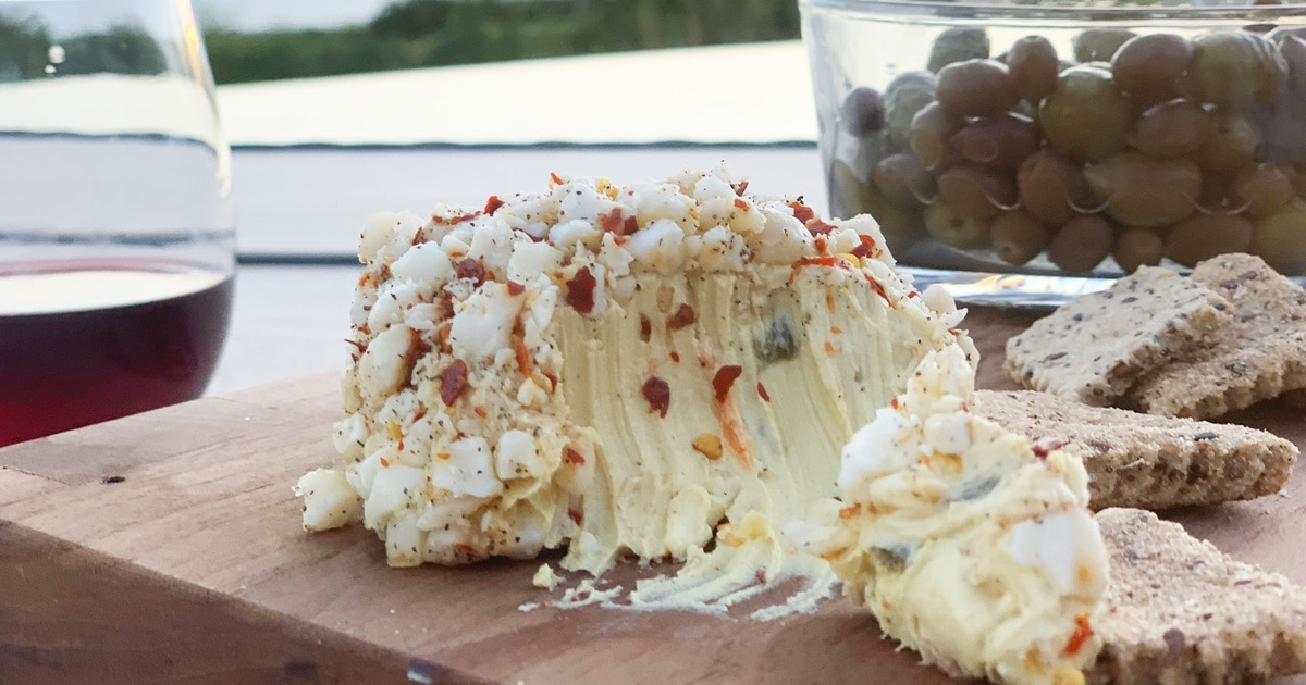 - For crust, in a large bowl or on a plate, add all components, stir, and roll cheese balls till evenly coated. Place again in fridge till able to serve.