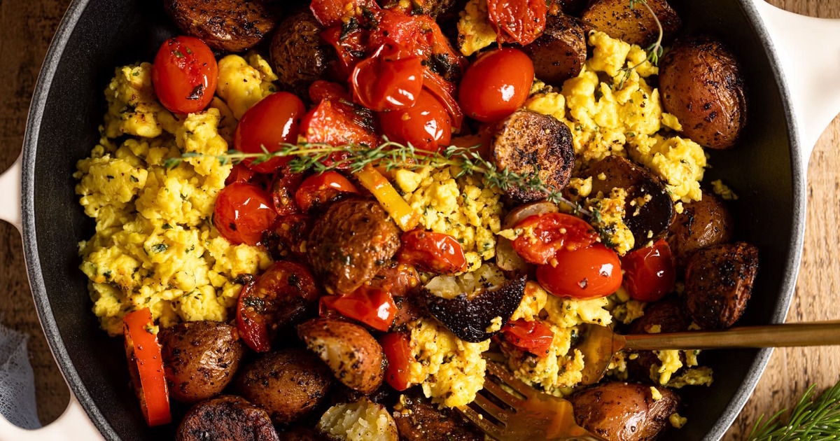 Nothing says brunch greater than an enormous, savory, hearty scramble. This easy recipe from Orchids + Candy Tea will hold you satiated for hours. Serve with a facet of vegan bacon or sausage for further protein.